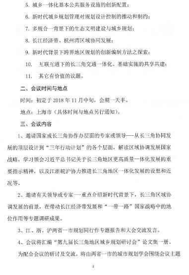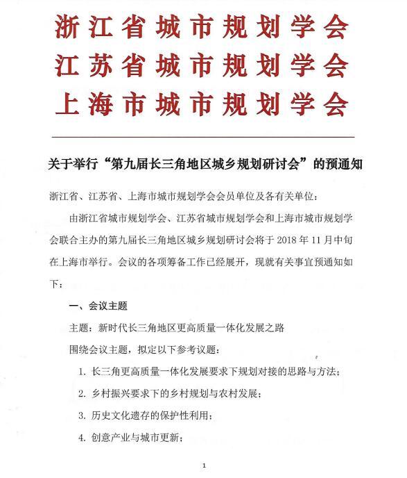 关于举行“第九届长三角地区城乡规划研讨会”的预通知