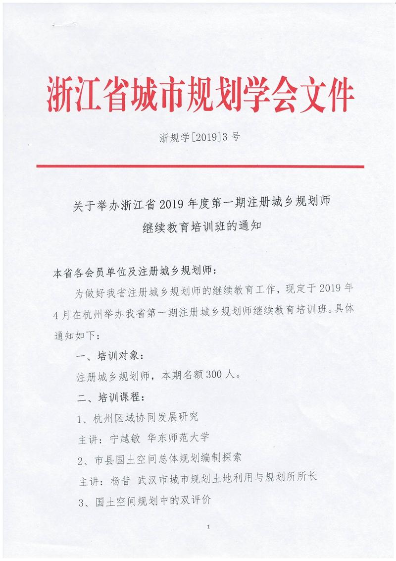 关于举办浙江省2019年度第一期注册城乡规划师继续教育培训班的通知